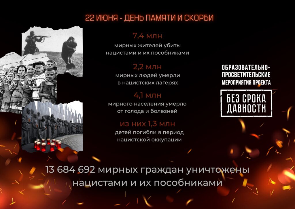 Детско-юношеский центр присоединяется к Всероссийской акции «Память священна» в рамках образовательно-просветительских мероприятий проекта «Без срока давности». Будем помнить о жертвах нацизма, горе и трагедии, которые несут нацизм и фашизм.